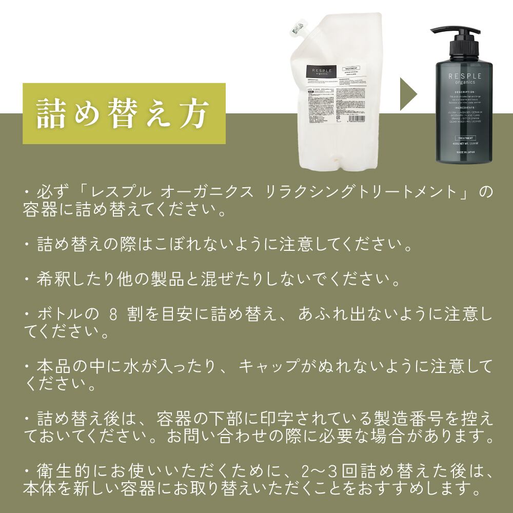 必ず「レスプル オーガニクス リラクシングトリートメント」の容器に詰め替えてください。