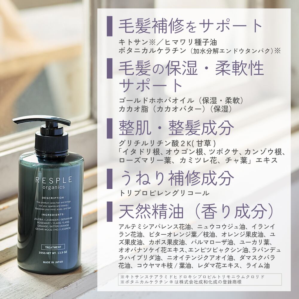 □RESPLE organics シャワーブラシを併用することで、トリートメントの浸透率を上げ、ハリコシツヤのある美しい髪へと導きます。